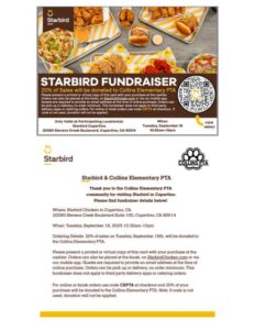 Cupertino StarBird Dine Out to Support Collins Elementary. Sep 16, 2025 All Day Event