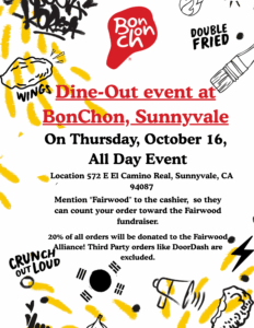 Join in for a delicious Dine-Out Fundraiser at Bonchon Sunnyvale to support the Fairwood Explorer Alliance! ππ This fundraiser helps fund school field trips and other activities organized by the Fairwood Explorer Alliance.
