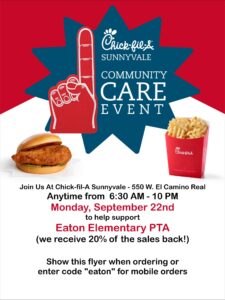 Sunnyvale Chick-Fil-A Dine Out to Support Eaton Elementary School. Sep 22, 2025, All Day Event